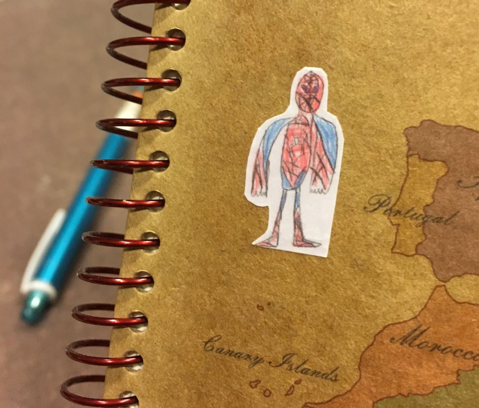 把弟弟畫的蜘蛛人貼在我的手帳本上: